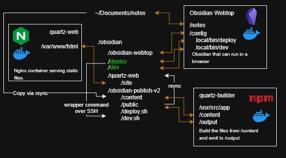 ssh -t laptopserver "~/docker/obsidian/obsidian-notes-v2/deploy.sh"Here is a diagram showing the workflow, which may be easier to understand.