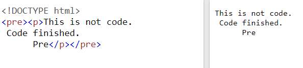 <pre> Already formatted text </pre>Pre stands for already formatted text, everything in the pre will have the spacing exactly as is; whereas in normal paragraph it will render as long line of text.